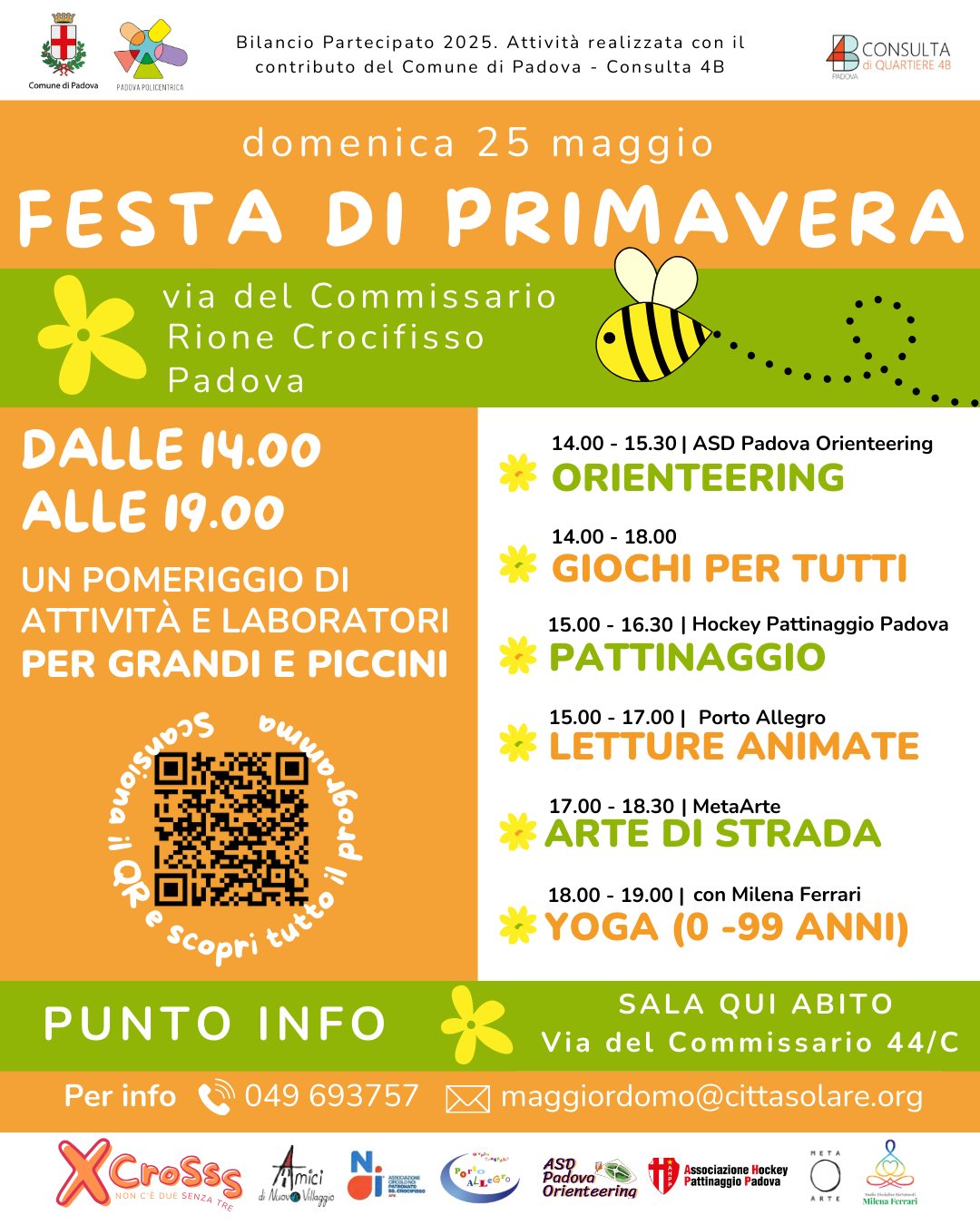Domenica 25 maggio, parteciperemo alla Festa di Primavera realizzata nell’ambito del progetto XCross – Non c’è due senza tre promossa da Amici di Nuovo Villaggio ODV, Circolo Noi – SS. Crocifisso e noi grazie al contributo del Comune di Padova…
